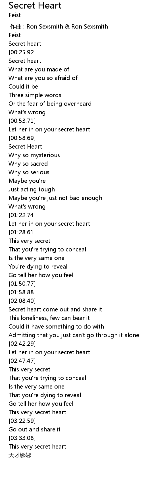 | [02:22.75] | Secret heart come out and share it |