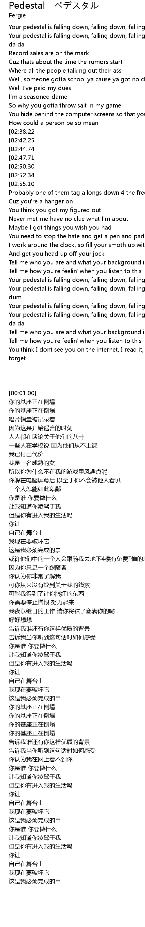 Your pedestal is falling down, falling down, falling down, da da da da da da |