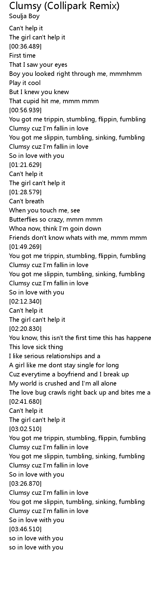 | [03:29.340] | Clumsy cuz I' m fallin in love |