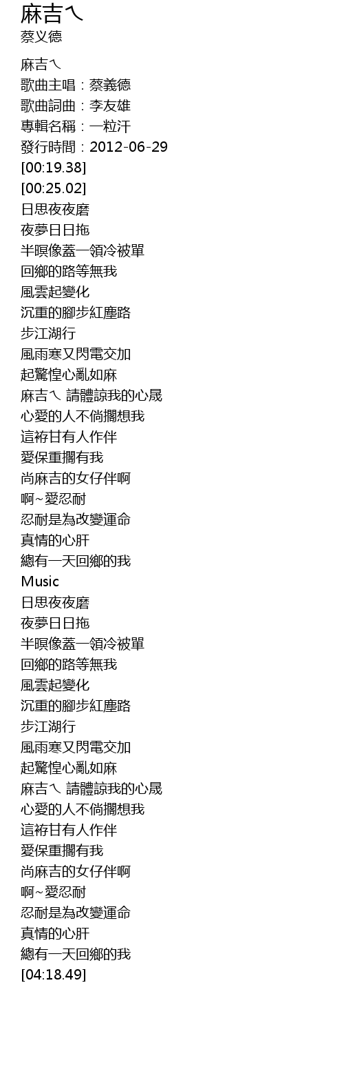 | [00:03.30] | 歌曲主唱:蔡義德 |