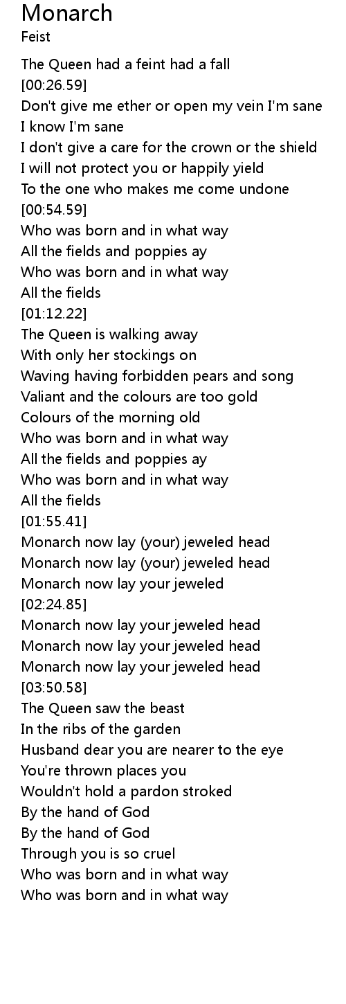 | [02:04.04] | Monarch now lay (your) jeweled head |