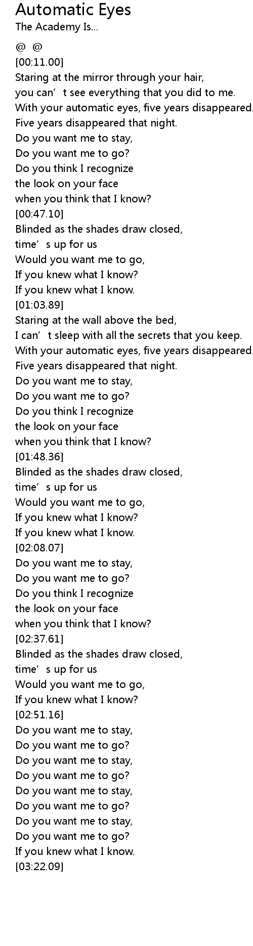 | [00:23.07] | With your automatic eyes, five years disappeared. |