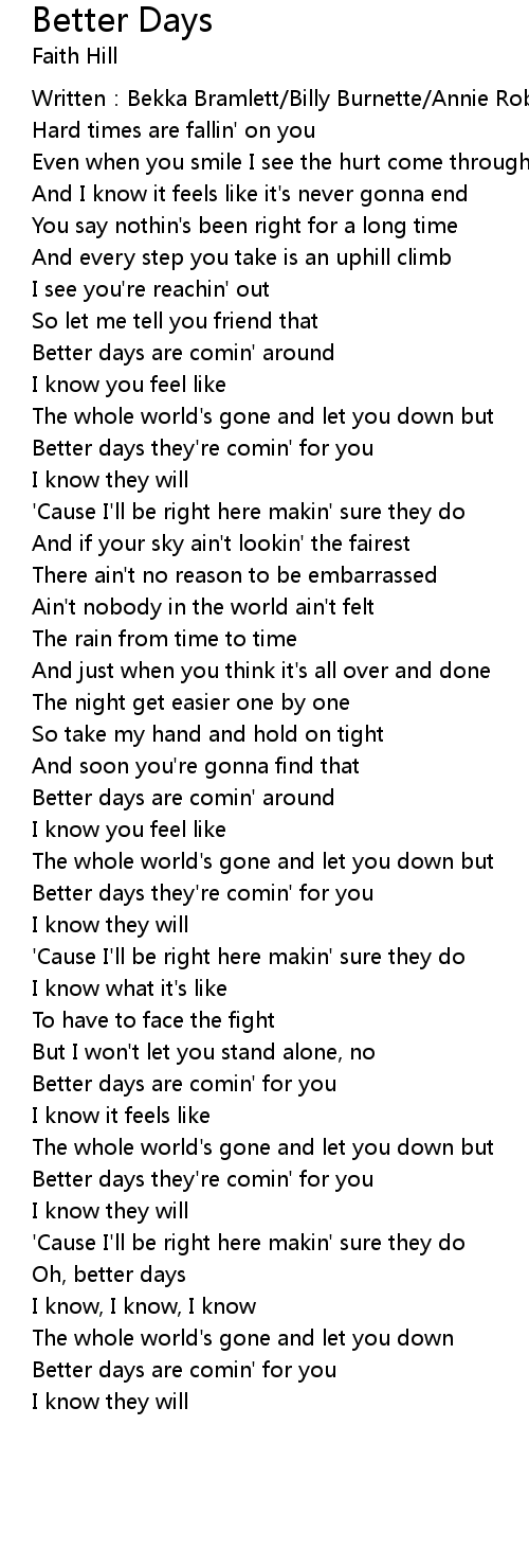 | Better days they' re comin' for you | |