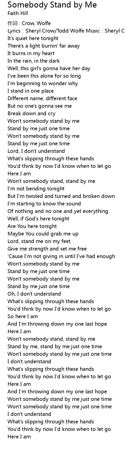 | Won' t somebody stand by me | |