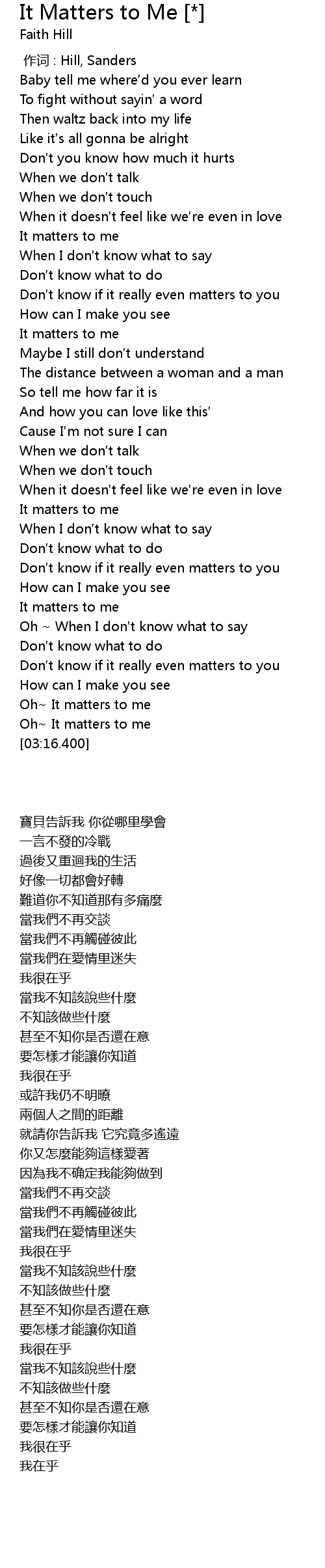 | [02:15.400] | It matters to me |