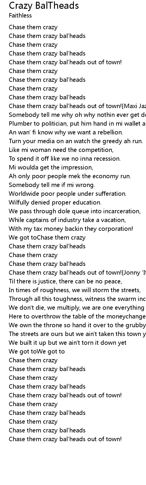 | Chase them crazy bal'heads out of town![Maxi Jazz] | |