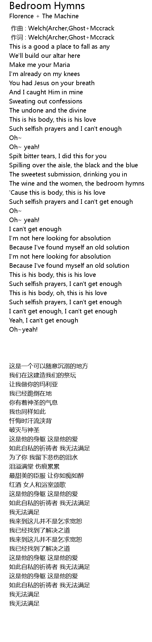 | [01:32.010] | Such selfish prayers and I can't get enough |