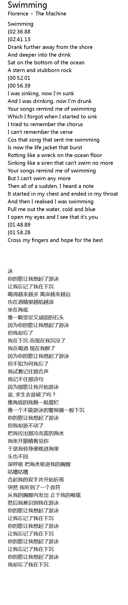 [00:34.54][00:52.01] Cos your songs remind me of swimming