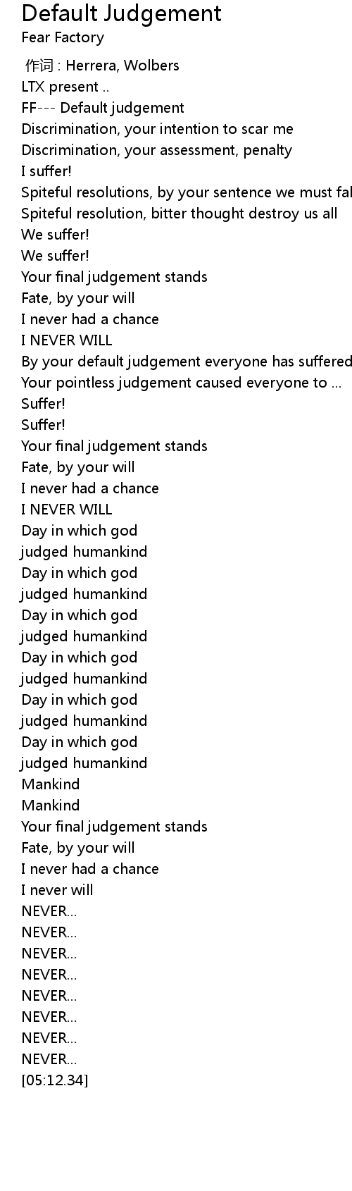 | Song | Default Judgement |