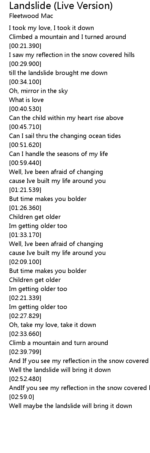 | [03:01.390] | Well maybe the landslide will bring it down |