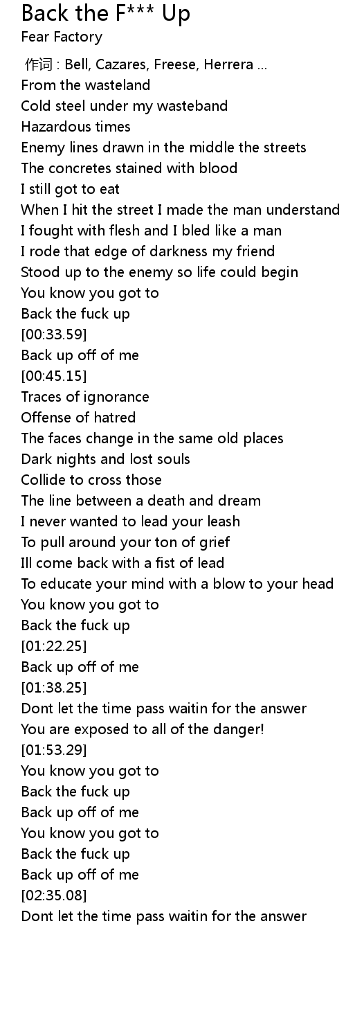 | [02:31.76] | Back the fuck up |