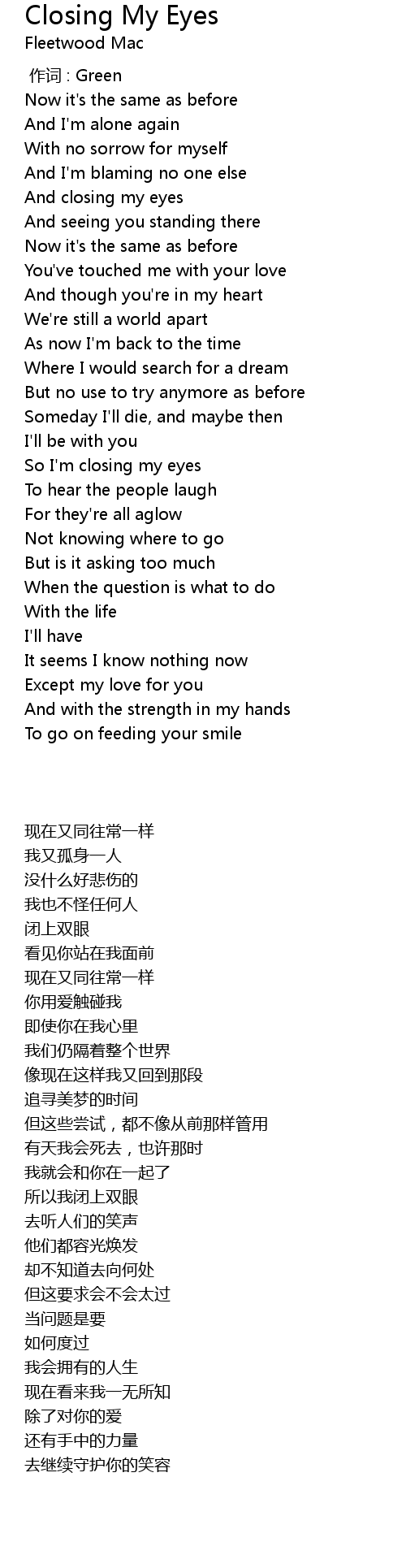 | Song | Closing My Eyes |