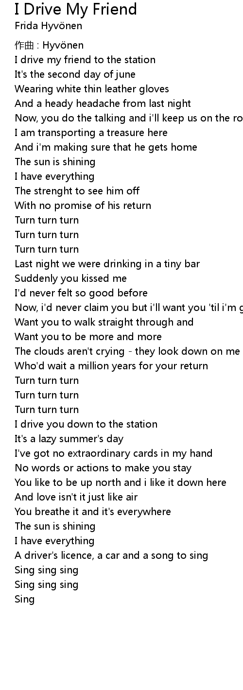 | Song | I Drive My Friend |