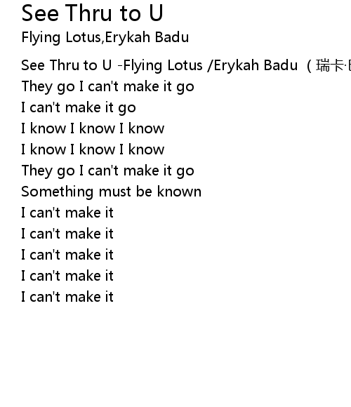 | [00:00.00] | See Thru to U Flying Lotus Erykah Badu rui ka ba du |
