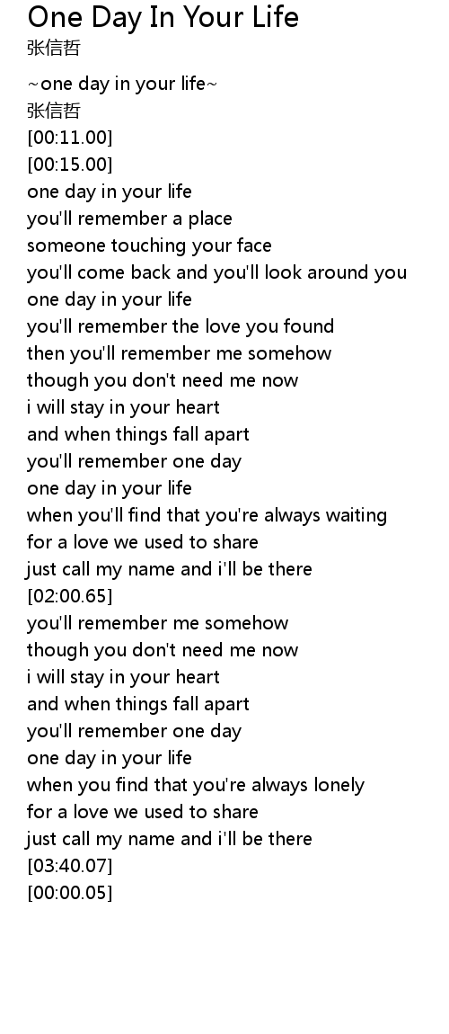 | [00:03.00] | one day in your life |