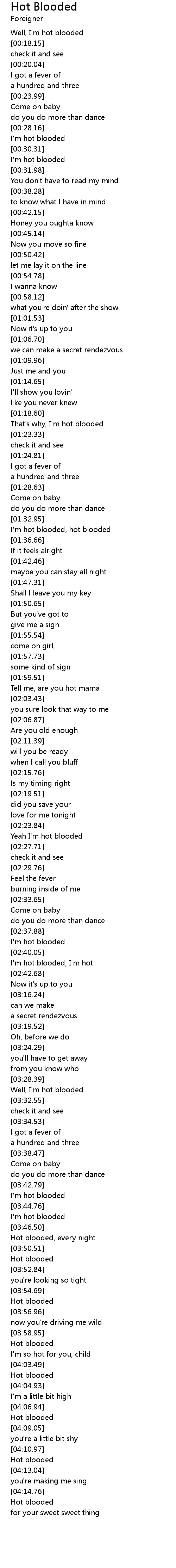 Hot blooded, every night |