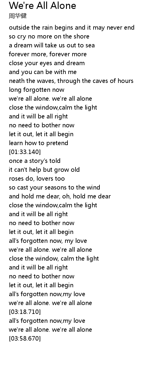 we're all alone. we're all alone |