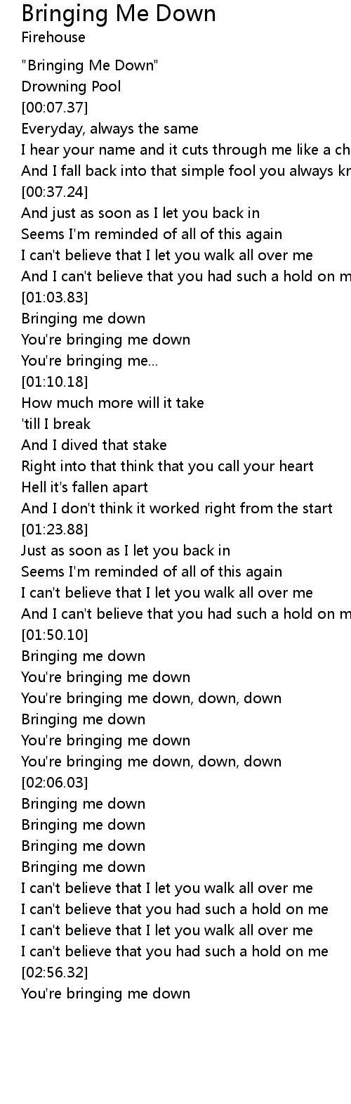 You're bringing me down, down, down |