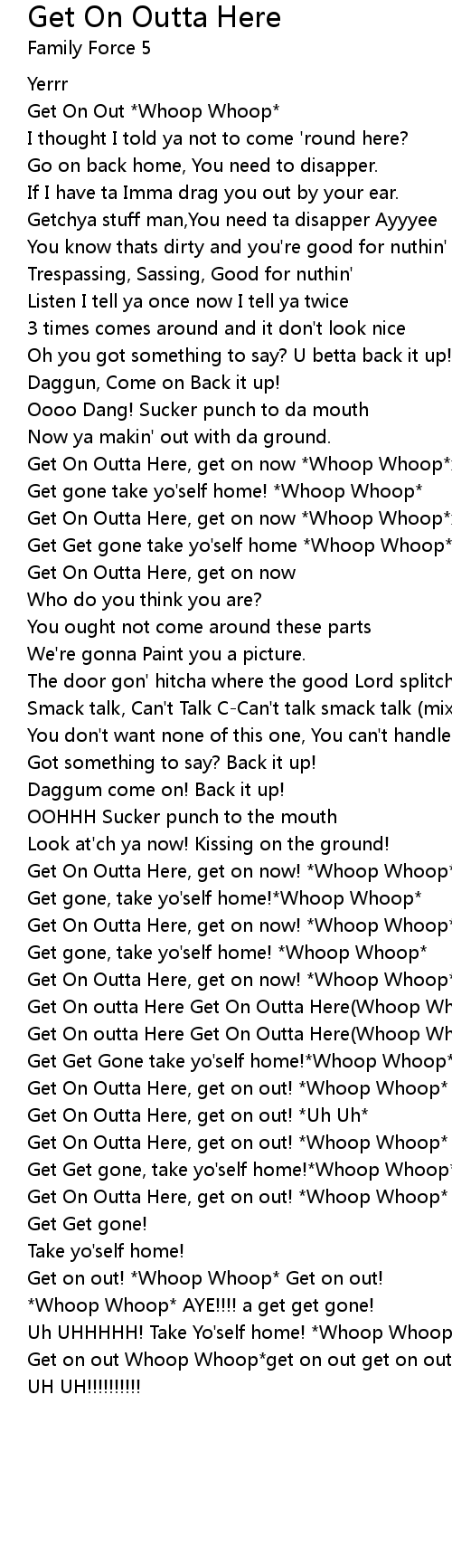 Get On outta Here Get On Outta Here(Whoop Whoop) Get on |