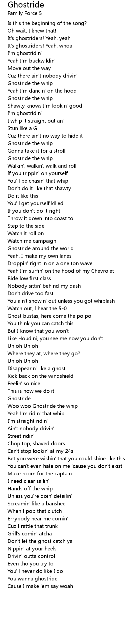 Woo woo Ghostride the whip |