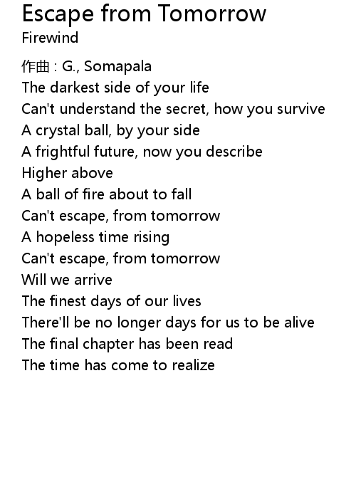 | Can' t escape, from tomorrow | |