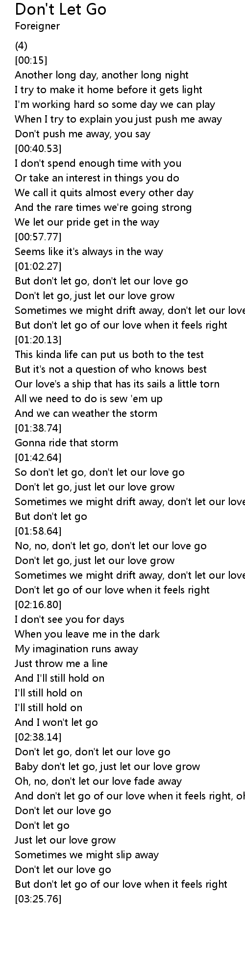 | [02:56.14] | Baby don't let go, just let our love grow |