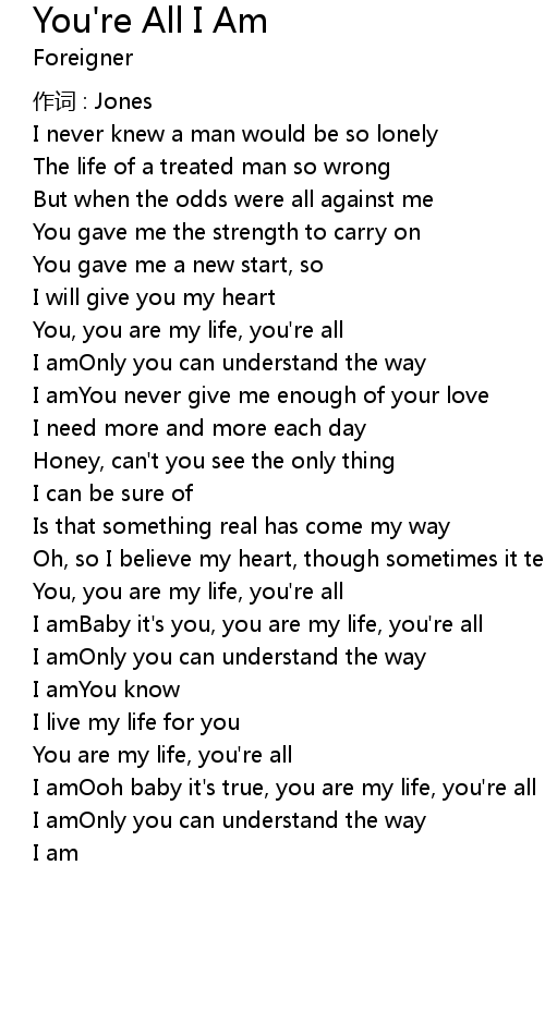 | I amOoh baby it' s true, you are my life, you' re all | |
