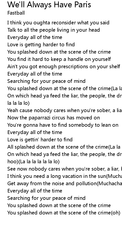 You splashed down at the scene of the crime(La la la la la la lo) |