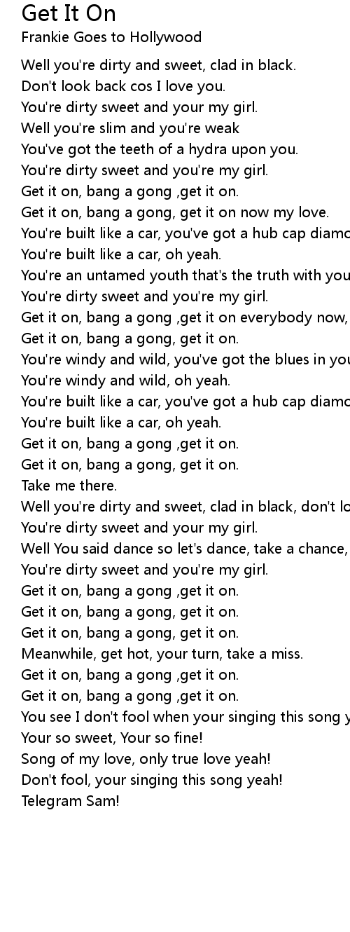 Get it on, bang a gong ,get it on. |