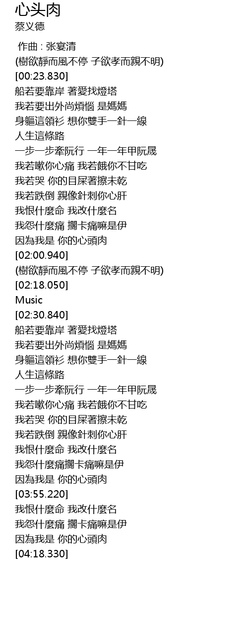 | [04:11.180] | 因為我是 你的心頭肉 |