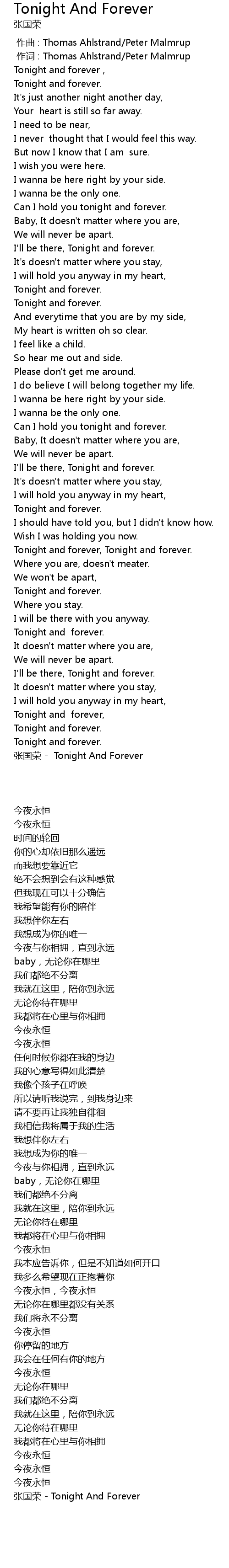 | [04:18.86] | zhāng guó róng Tonight And Forever |