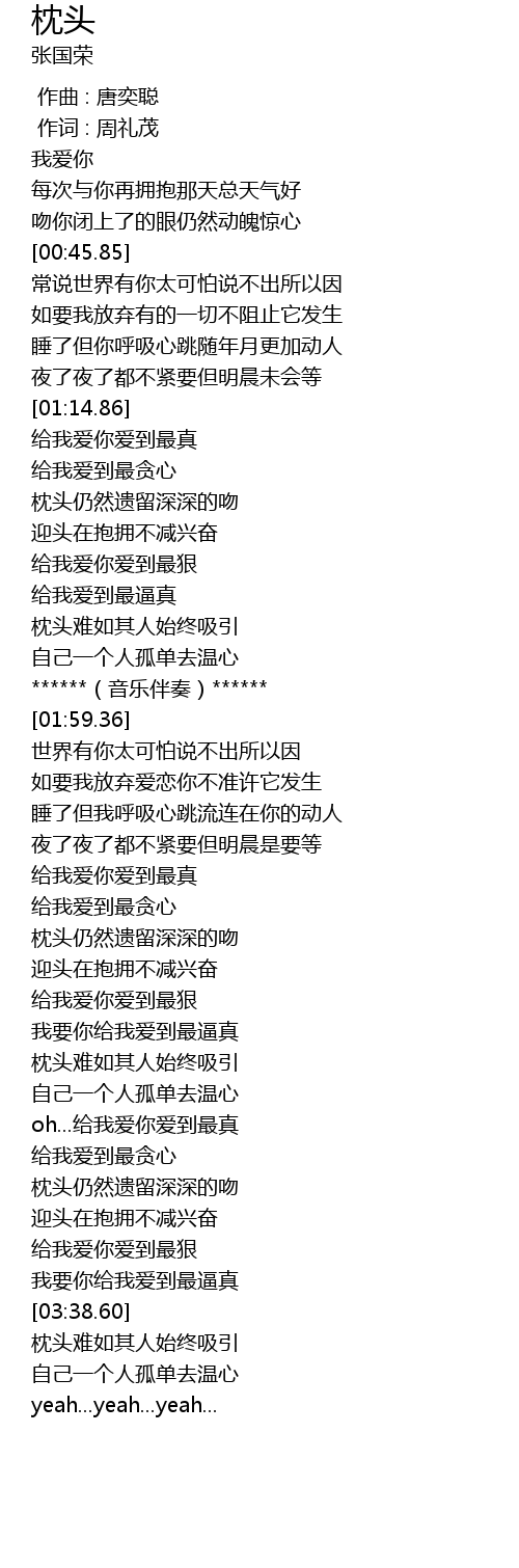 | [01:38.09] | 枕头难如其人始终吸引 |