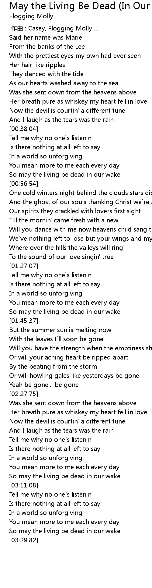 | [03:25.68] | So may the living be dead in our wake |