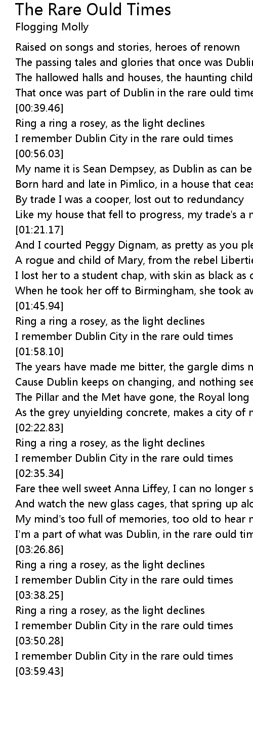 I'm a part of what was Dublin, in the rare ould times |