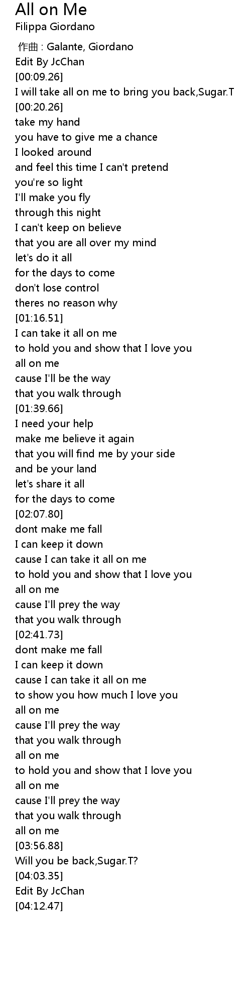| [03:33.96] | all on me |