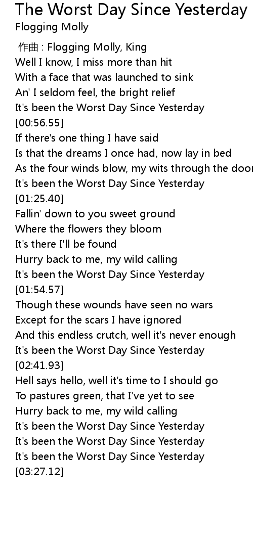 | [02:35.01] | It's been the Worst Day Since Yesterday |