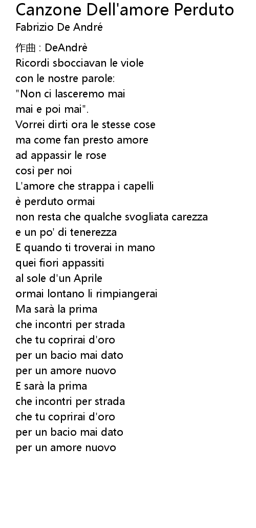 | Song | Canzone Dell'amore Perduto |
