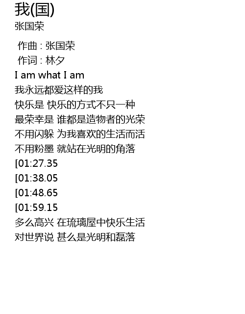 | [03:01.35][01:48.65] | 我喜欢我 让蔷薇开出一种结果 |