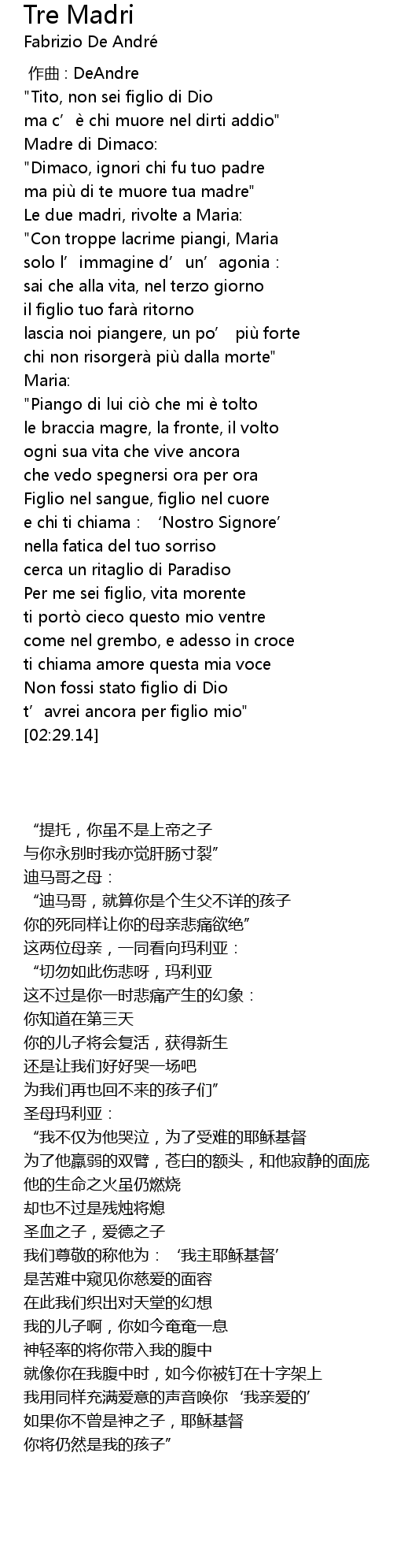 | [02:23.36] | t’avrei ancora per figlio mio" |