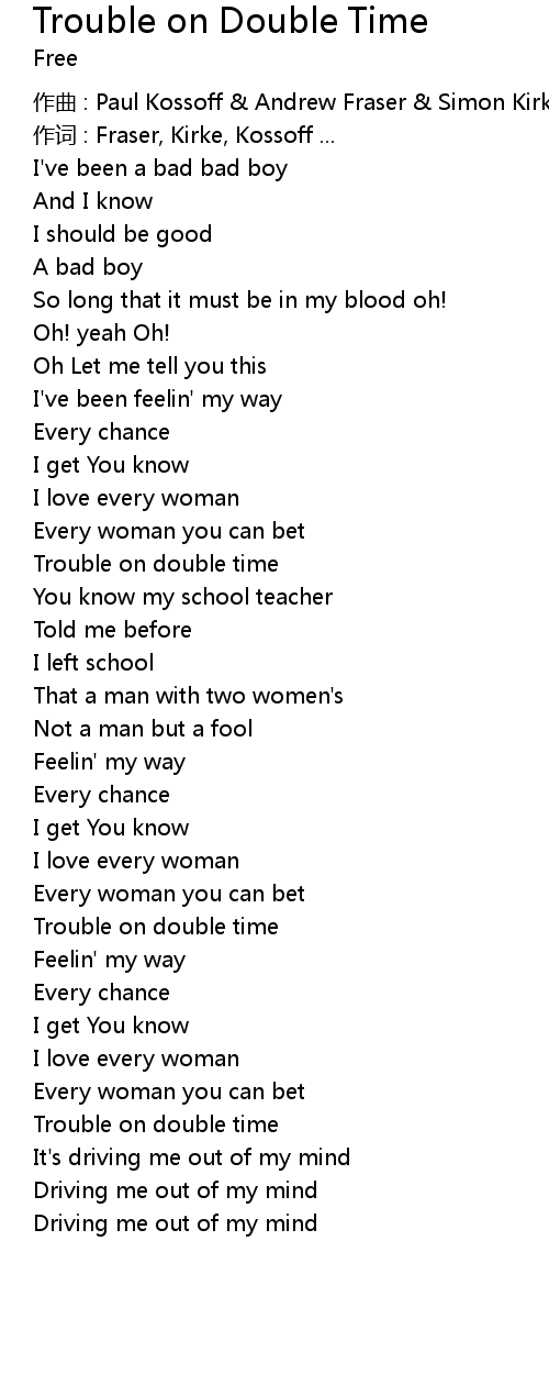 | 作曲 : Paul Kossoff & Andrew Fraser & Simon Kirke & Paul Rodgers | |