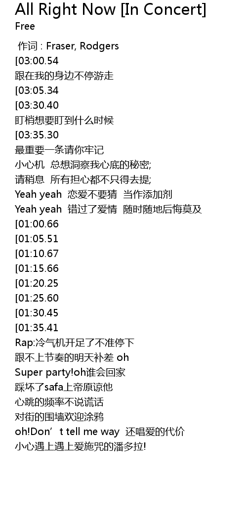 | [02:35.50][01:35.41] | all aright all right feel fei jiu xiao yun wai! |