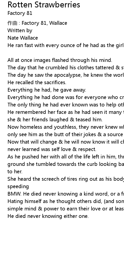 | Now homeless and youthless, they never knew what he truly was for they could only see him as the butt of their jokes & a source of cruel entertainment. | |