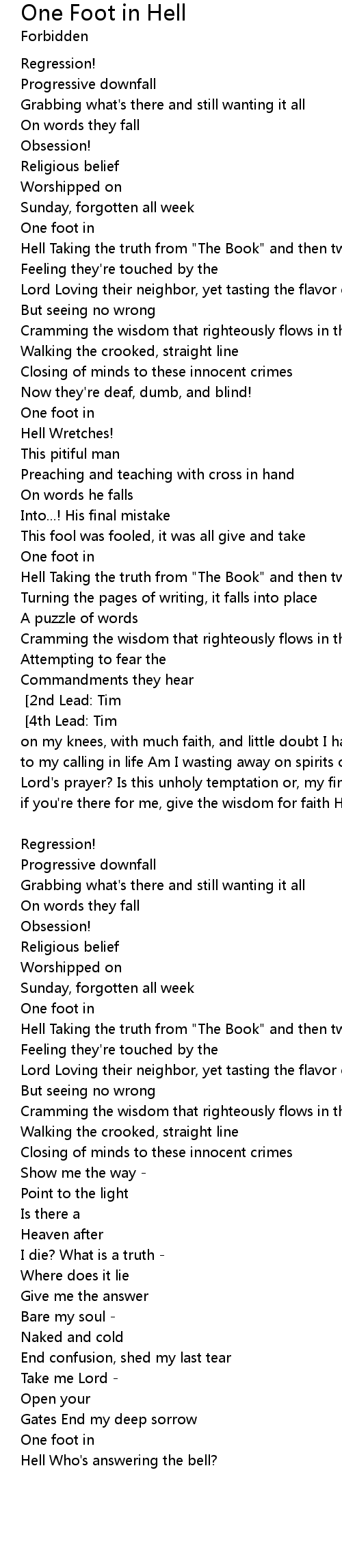 Now they're deaf, dumb, and blind! "I look to the Heavens and call the Lord's name. Praying on my knees, with much faith, and little doubt I have a yearning for the answers to my calling in life Am I wasting away on spirits of myth? Am I questioning the Lord's prayer? Is this unholy temptation or, my final realization? Please, God, if you're there for me, give the wisdom for faith Help me Lord! God help me" - ! |