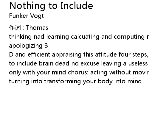 | Song | Nothing to Include |