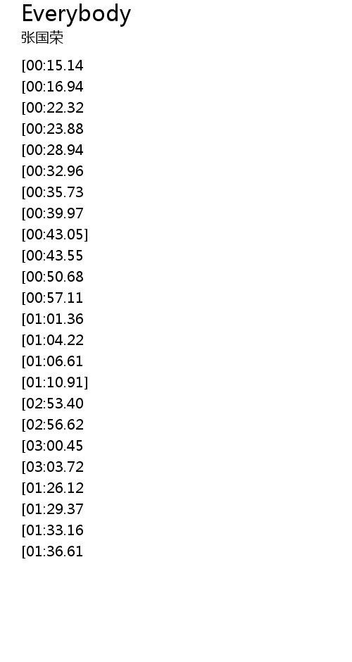 | [03:21.77][02:53.40][01:11.90] | Everybody bì shang shuāng yǎn |