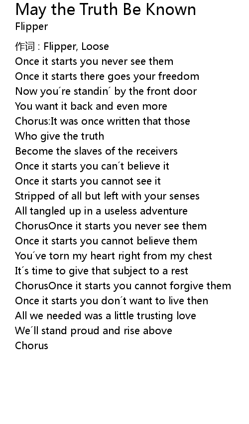| Song | May the Truth Be Known |