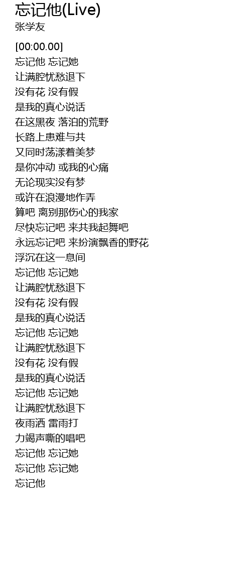 | [00:05.00] | 忘记他 忘记她 |