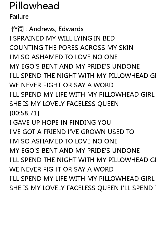 | [01:33.52] | I' LL SPEND THE NIGHT WITH MY PILLOWHEAD GIRL |