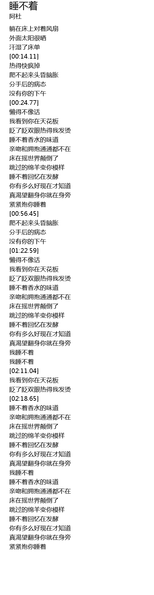 | [01:56.37] | 我睡不着 |