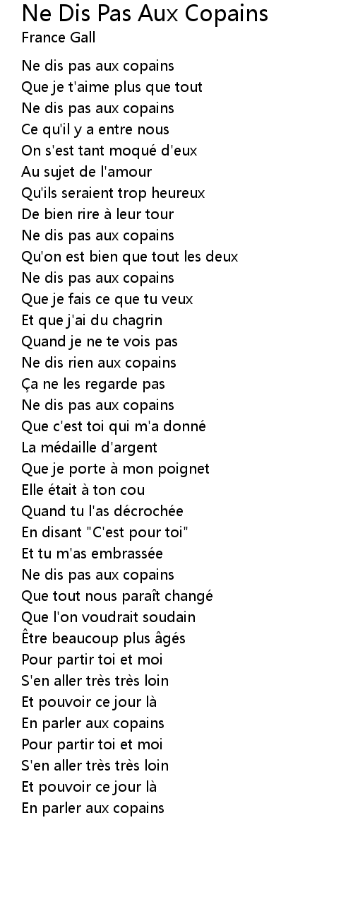 | Song | Ne Dis Pas Aux Copains |